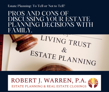 At the Law Office of Robert J. Warren, we can help ensure that your plan aligns with your goals and discuss with you the potential consequences of sharing your plan details with loved ones. Contact today at 352-377-6600, or through our website at www.robertjwarren.com.